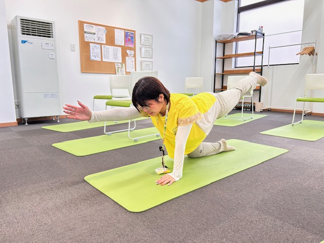 - やり方: 四つん這いで対角線の手と足を同時に動かします(左右各10回)。